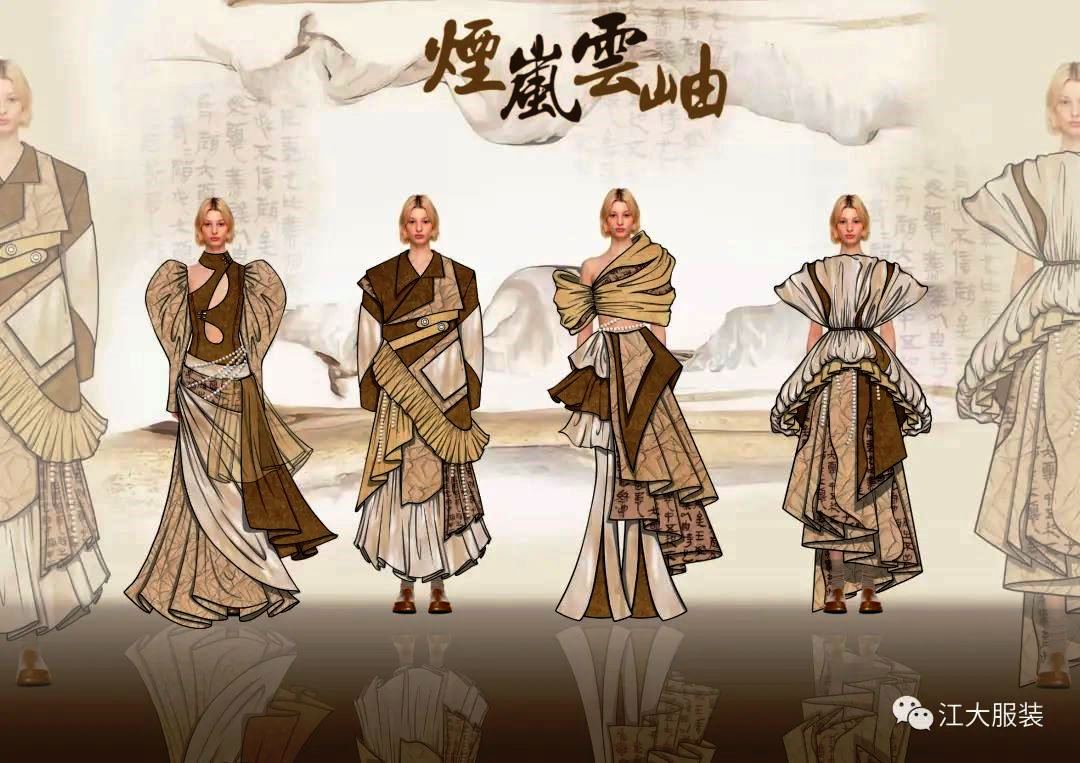 江漢大學(xué)共有5組作品入圍,最終榮獲4個獎項。其中,表演(服裝表演與設(shè)計)2020級邊瑾琳的作品《煙嵐云岫》獲得一等獎;服裝與服飾設(shè)計2020級甘苑的作品《鏤花之藍》獲得二等獎;服裝與服飾設(shè)計2020級王肖肖作品《鳳鳴》獲得三等獎;服裝與服飾設(shè)計2020級韓樂的作品《楚聞漆事》獲得最具創(chuàng)新融合獎。