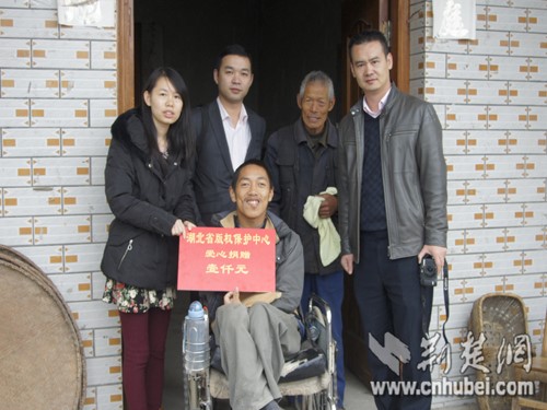 今年26歲的劉杭家住英山縣陶河鄉(xiāng)英太寨村一組,從小患小兒麻痹,一歲多點的時候一次高燒致神經(jīng)癱瘓,從此他只能走路靠輪椅,吃飯靠舔,因為身體原因也從沒上過學(xué)。