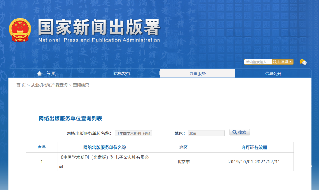 每經(jīng)小編在國家新聞出版署網(wǎng)站上查詢得知,《中國學(xué)術(shù)期刊(光盤版)》電子雜志社有限公司(以下簡稱知網(wǎng))網(wǎng)絡(luò)出版服務(wù)許可證有效期截止于2021年12月31日。