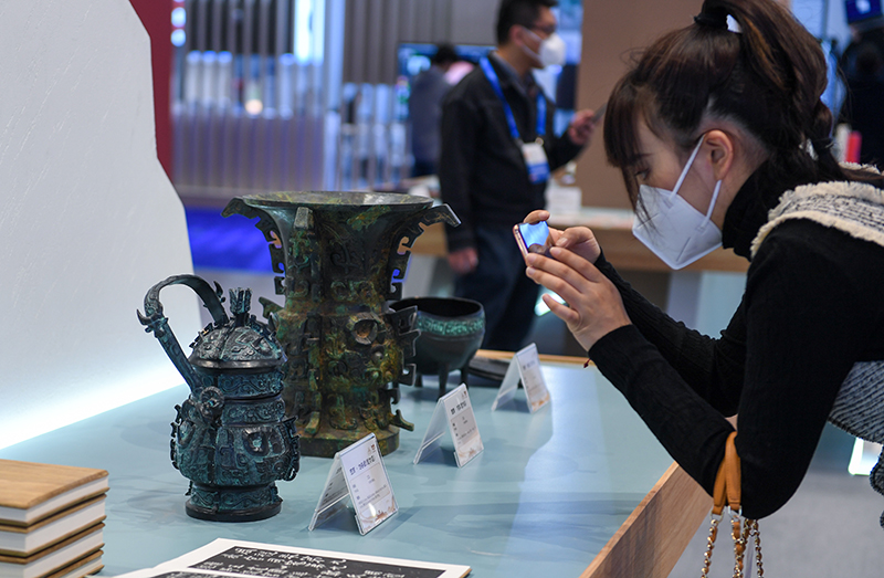 正在深圳舉行的第十八屆文博會上,中國國家版本館中央總館攜手西安、杭州、廣州三家分館首次集體亮相,展區(qū)面積500多平方米。中國國家版本館入藏版本量近2400萬余冊/件,展品涵蓋十大類版本類型,旨在打造國家版本典藏中心、展示中心、研究中心、交流中心,更好發(fā)揮以史鑒今、啟迪后人的重要作用。這是12月29日拍攝的中國國家版本館展區(qū)。