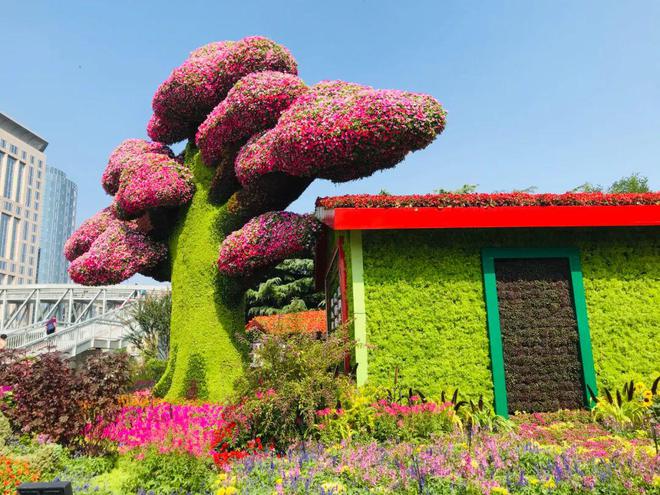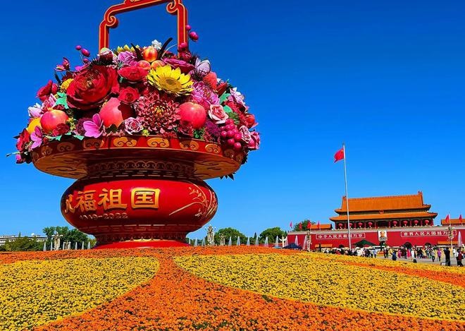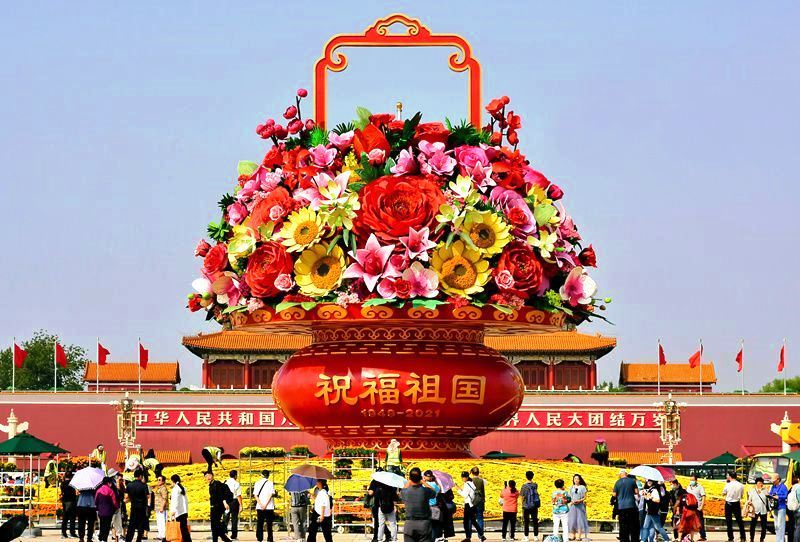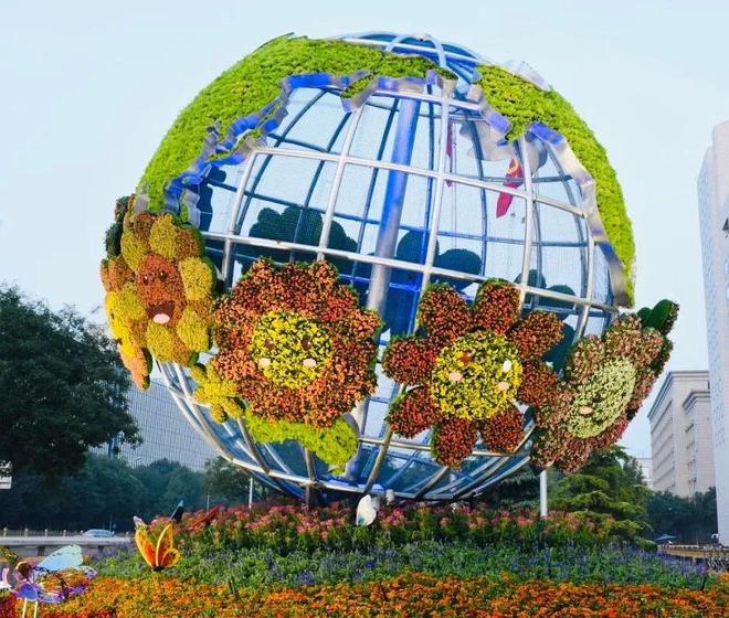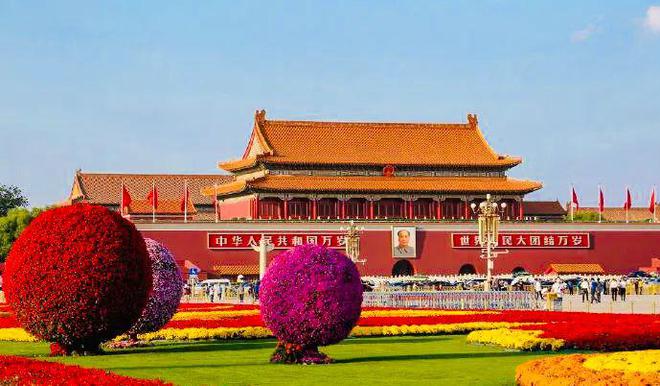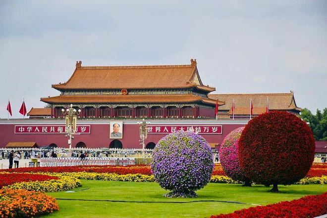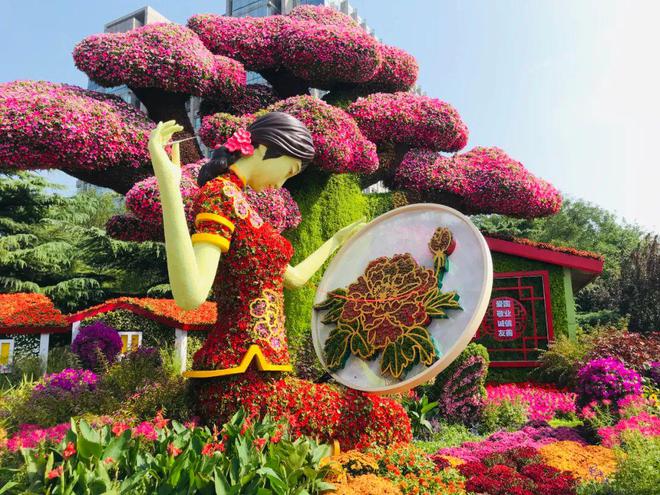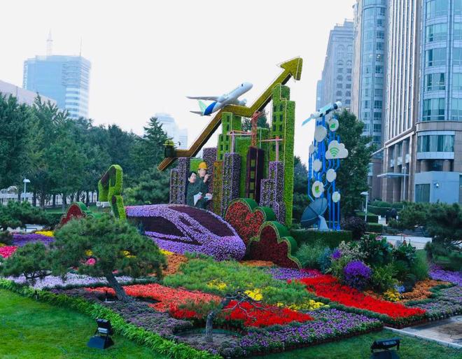 國慶來臨之際,北京天安門廣場花壇錦簇,裝扮一新,各種園藝設(shè)計(jì)及造型作品讓人眼花繚亂。
