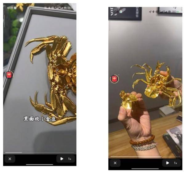 在調(diào)查過程中,執(zhí)法人員要求山姆超市提供該款黃金螃蟹的供貨方和制作者信息,但令吳文勝沒想到的是,對方竟拿出的合作資料竟然寫著他本人“吳文勝”的名字。“我仔細查看后發(fā)現(xiàn),那份資料很有可能是我去年年底出售一批黃金螃蟹時,隨產(chǎn)品附贈的個人信息,別人一般不會有備份。”吳文勝推斷,供貨方大概率是去年購買了他所制作的黃金螃蟹,然后進行了壓膜澆筑,在縮減克重后批量生產(chǎn),最終流入了山姆超市。