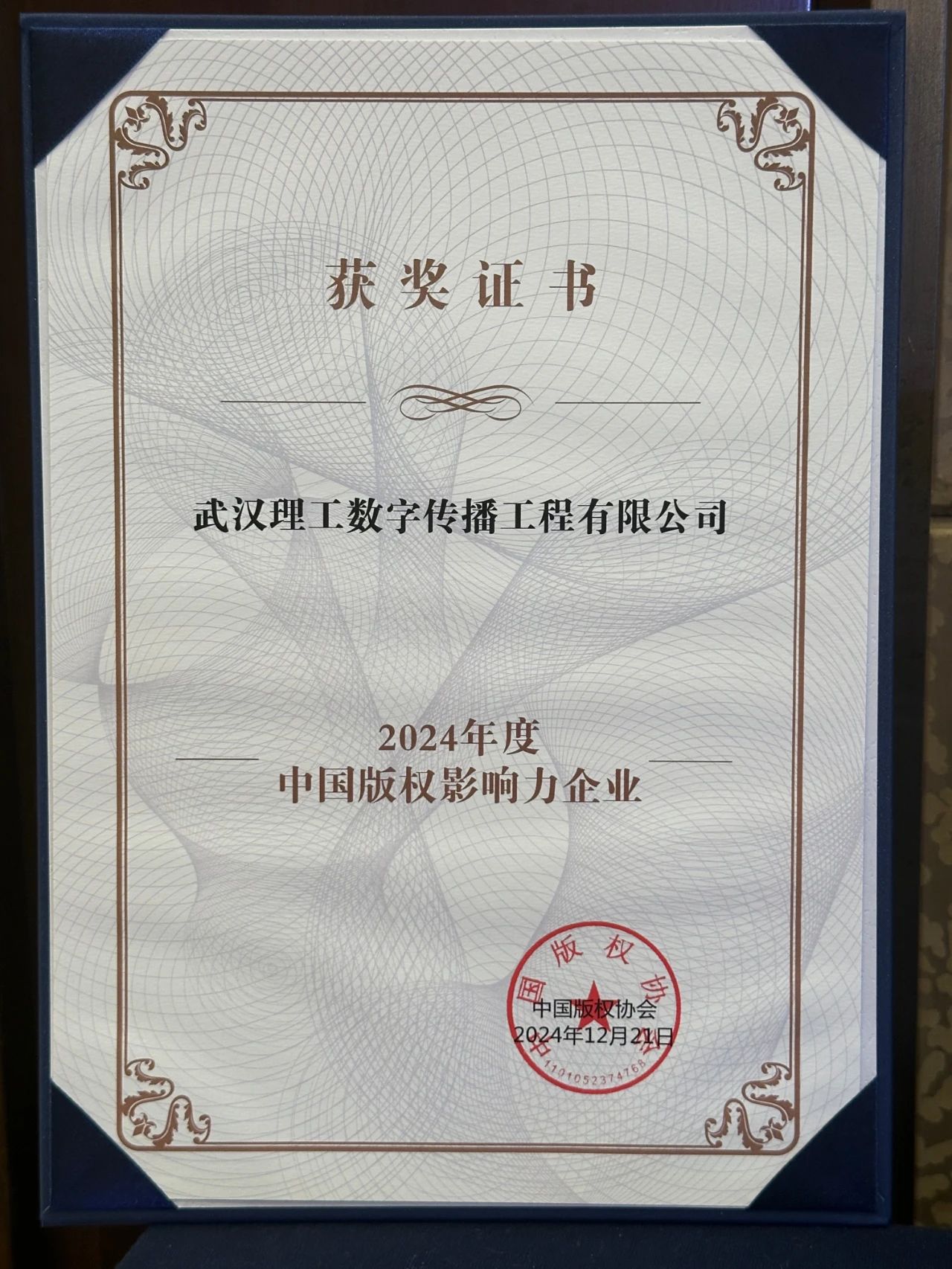 年會公布了2024年度“2024年度中國版權(quán)保護(hù)力企業(yè)”“2024年度中國版權(quán)創(chuàng)新力企業(yè)”“2024年度中國版權(quán)影響力企業(yè)”等名單并授牌。其中,武漢理工數(shù)字傳播工程有限公司分別榮獲“2024年度中國版權(quán)影響力企業(yè)”榮譽稱號。